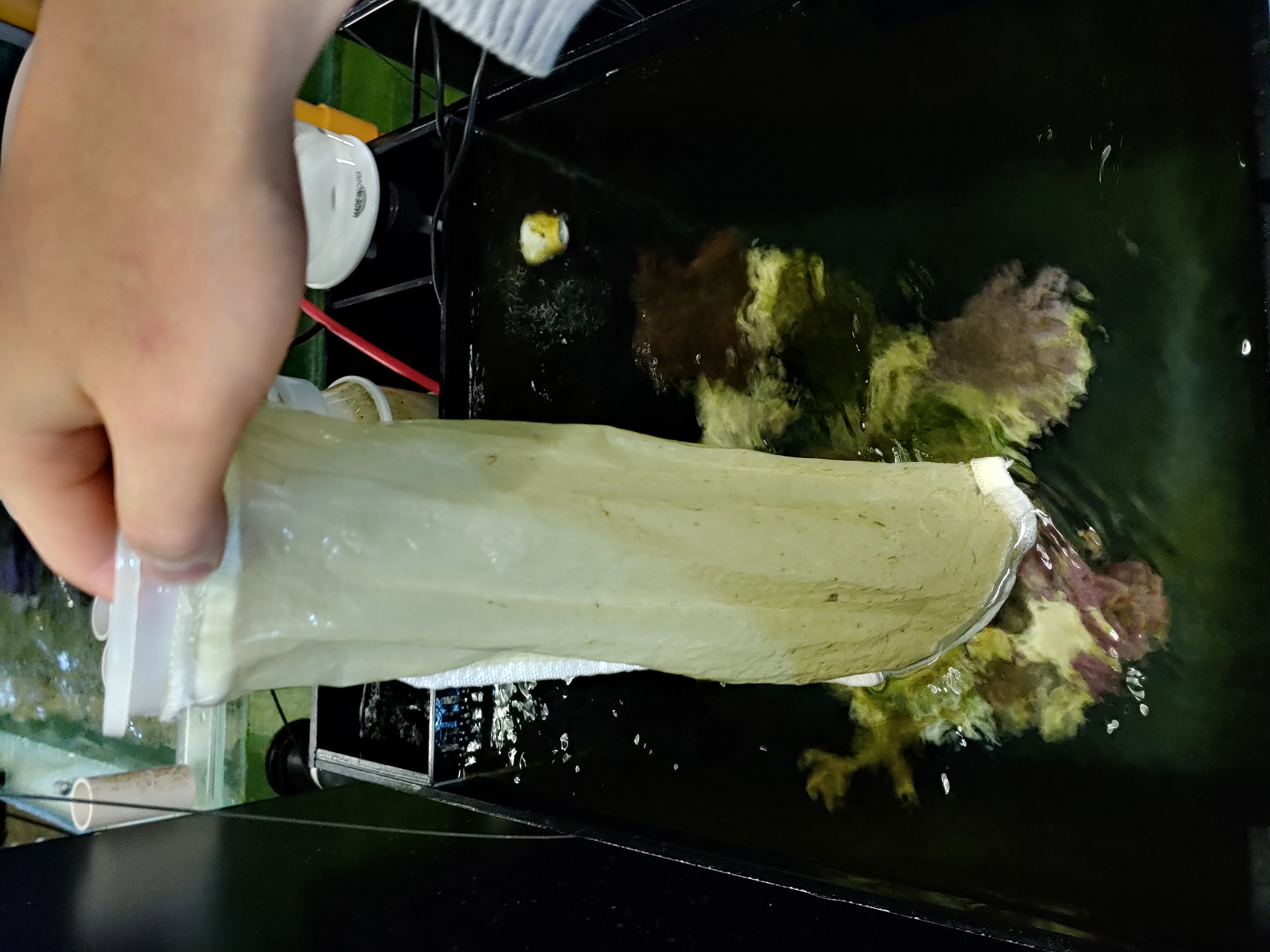 양말필터가 하루에 저만큼의 찌거기를 걸러줍니다.. 교체를 안하면 보충수가 넘치고 염도 스윙이 옵니다 ㅠㅠ.